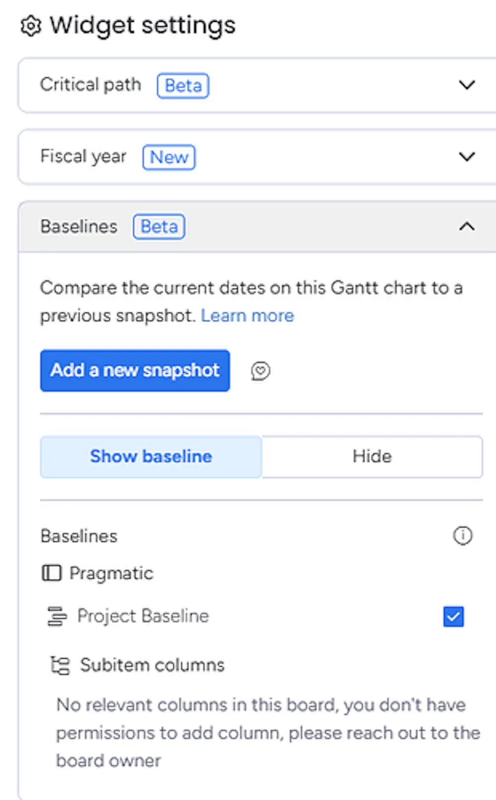 When i create a baseline is there a way to capture the sub items timeline fields to be part of the baseline?