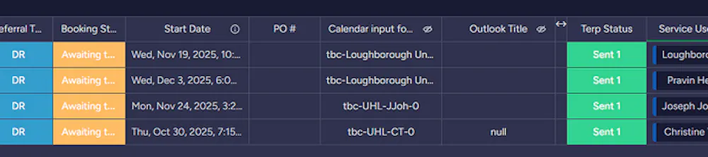 This is the formula I used, and it is in action under formula column “Calendar Input fo..”. It is extract from “PO #” (text column), Contract Code (formula column), Initials (Mirror Column) and Interpreter Initials (Mirror Column" then insert a dash between them. If there are no value, it will add “tbc” (to be confirmed) in its place.