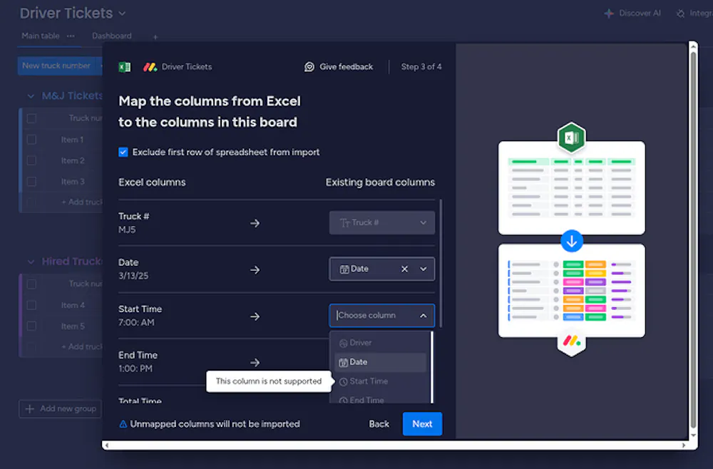 I am new to Monday.com we have a trucking company, Dump trucks to be exact and we Haul all kinds of aggregates, sand, and gravel for construction projects across Eastern North Carolina. I have a ton of Historical data that i want to put into the platform. I am struggling to see how monday can help streamline my work. I keep hitting walls and sometimes it feels very boxed in. Here is an example, just WHY? why is this even an un supported action? Surely the devs can make this happen to import into the columns i have setup. Am i missing something? This seems super basic as a feature.