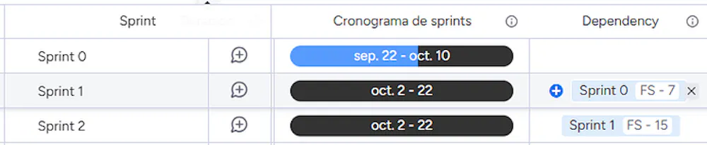 Sprint 1 depends on Sprint 0, in theory, Sprint 1 should start on Oct 13th but Monday is showing this:
