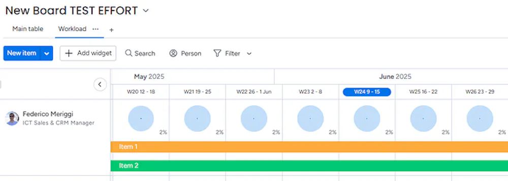 In the workload widget I can see:
