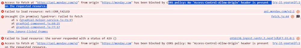 Access to fetch at ‘https://api.monday.com/v2’ from origin ‘https://monday.com’ has been blocked by CORS policy: No ‘Access-Control-Allow-Origin’ header is present on the requested resource.