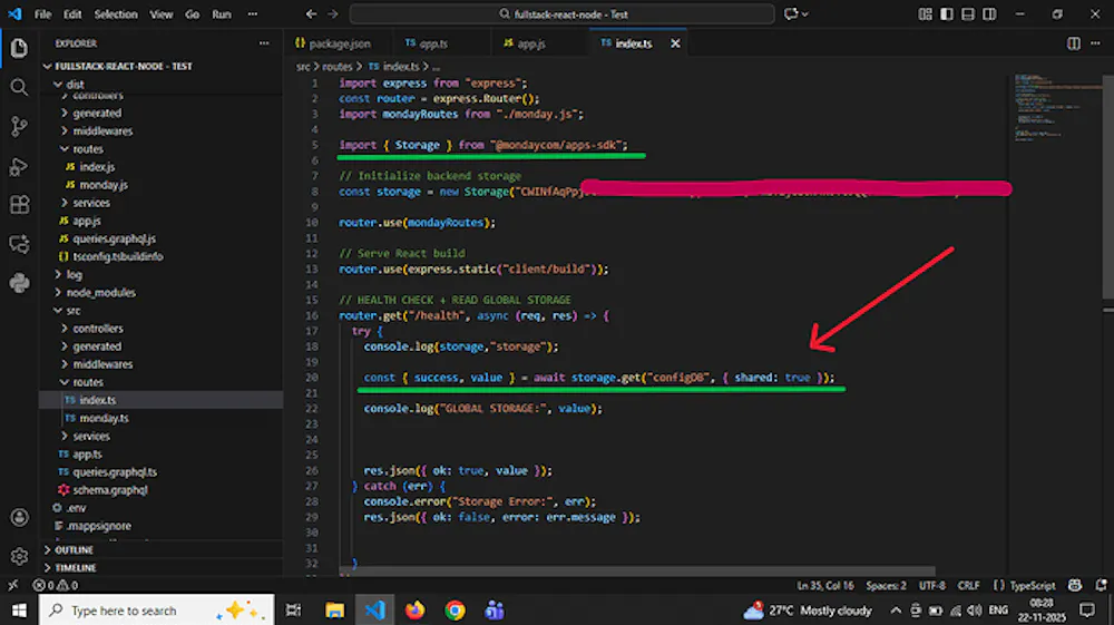 Now I added a backend and I’m trying to read the same storage data from backend using: