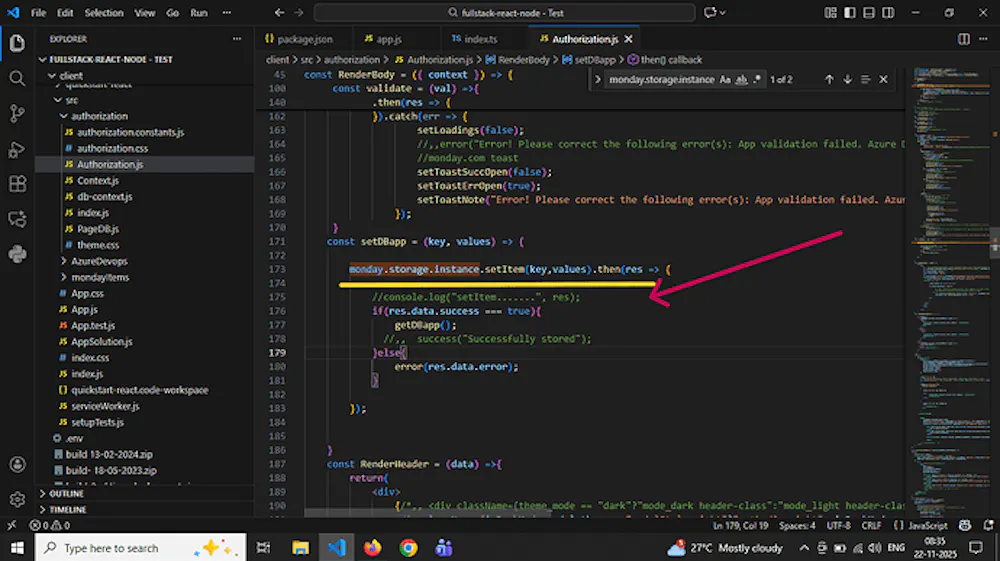 monday.storage.instance.setItem(“configDB”).then(res => {