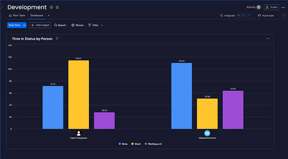 - You can identify individuals who spend more or less time in specific statuses, allowing you to analyze their efficiency or workload distribution.