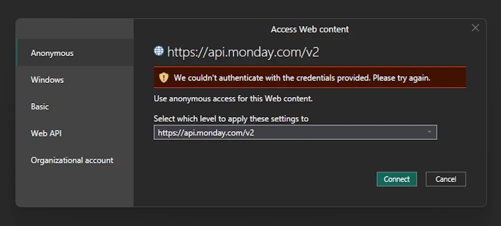 Any Power BI Weapons around?, Im currently tearing my hair out with authentication issues for Power BI to Monday API.