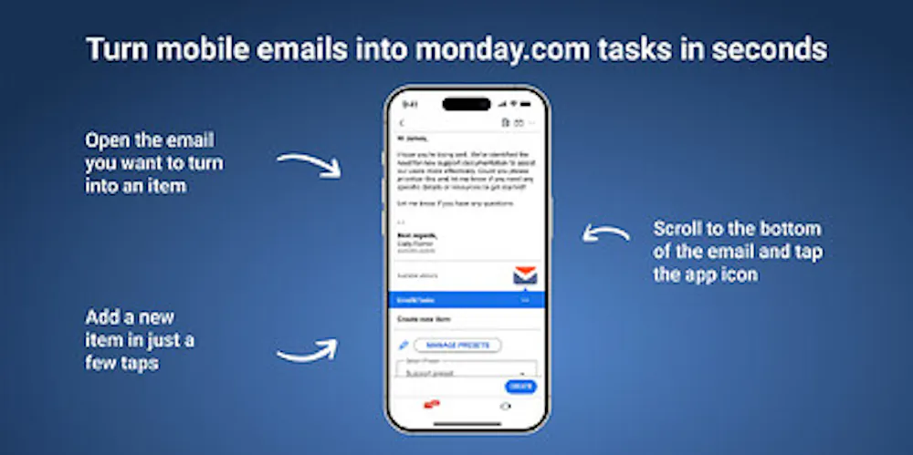 Caption: Create monday tasks from Gmail mobile in just a few taps