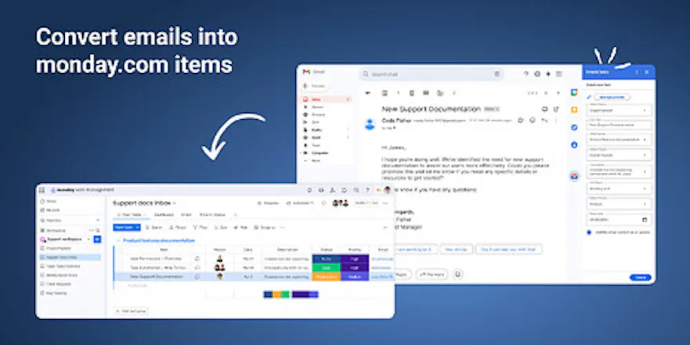 Caption: Convert Gmail messages into structured monday items with just a few clicks