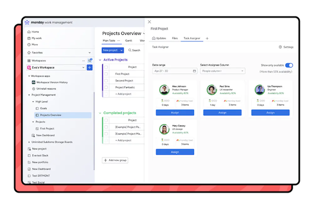 Managing team workload is central to productive, healthy project delivery, and monday.com makes this possible with streamlined dashboards and clear visualization tools. The Workload Widget offers instant clarity into who’s doing what and how much each person has on their plate at any moment. With this, managers can proactively balance team workload, reduce stress, and ensure work gets done without bottlenecks or burnout.