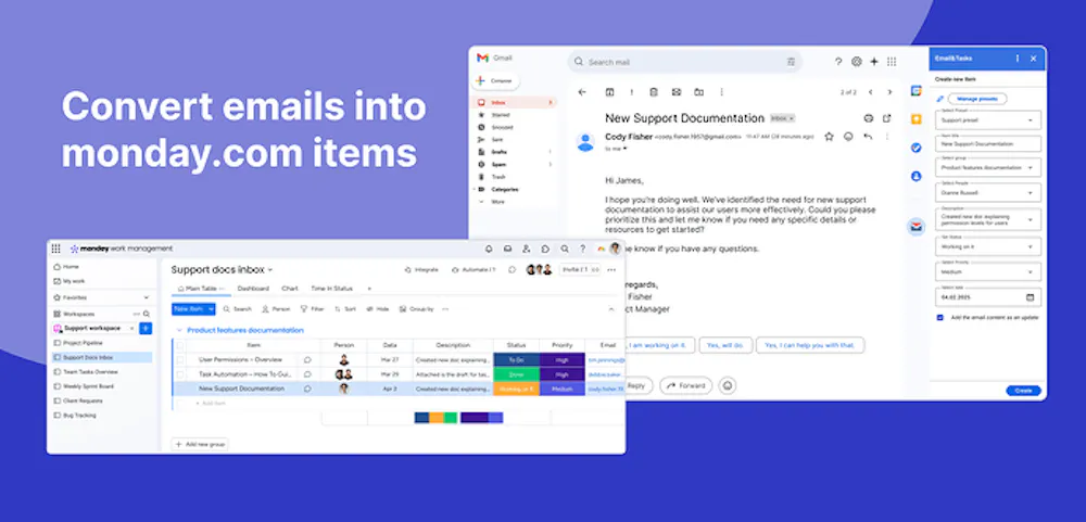 With Email to Task for monday.com, you can streamline your email task management by turning any Gmail message into a fully structured task inside your Monday boards, in just a few clicks.