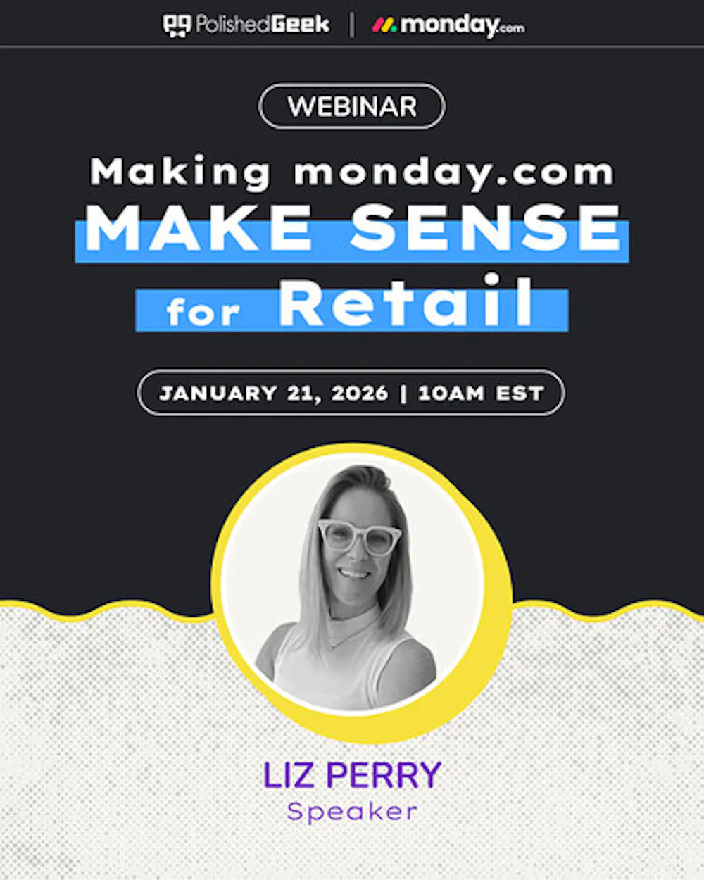 Join polishedgeek on January 21 to learn how to design monday.com workflows so retail teams can communicate clearly, execute efficiently, and measure what really matters for your organization.