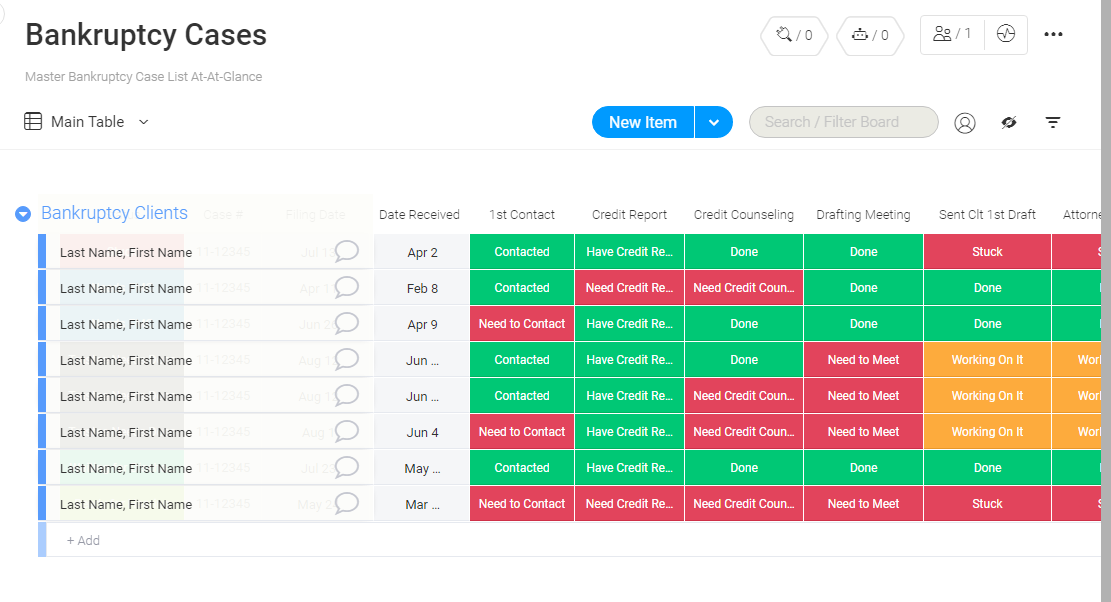 I am just getting into automation. Every time your clientâs case progresses and you change the status, you can automate a quick update email to the client. Clients usually feel they received poor service when they donât get a lot of updates. This is a BIG LIKE about Monday.com for us.