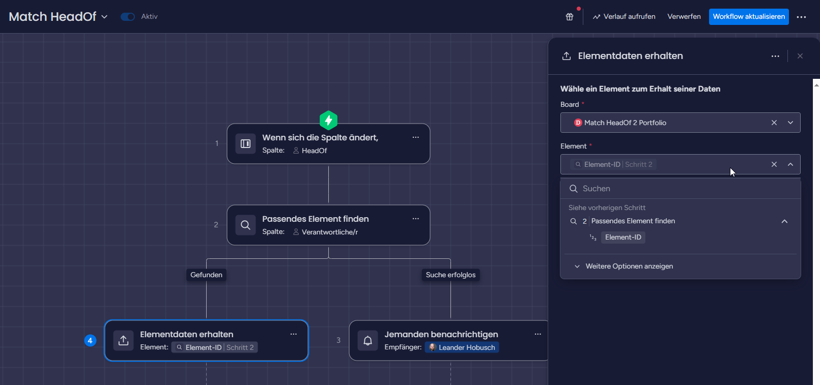 Instead of a branch workflow, I’d recommend setting up a board that has your ‘data’. For this example, I have all states listed and then the appropriate sales person in the people column. Then when we get new leads, the workflow uses ‘Find Matching Item’ on the states board, gets item data and then updates column.