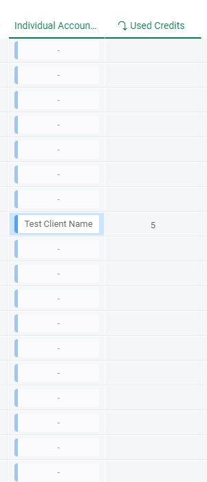 One thing to mention and very important is that many of these clients will have credits purchased but nothing will be used - so the row will be blank. Other clients will have used credits and their rows will have a number indicating how many credits were used.