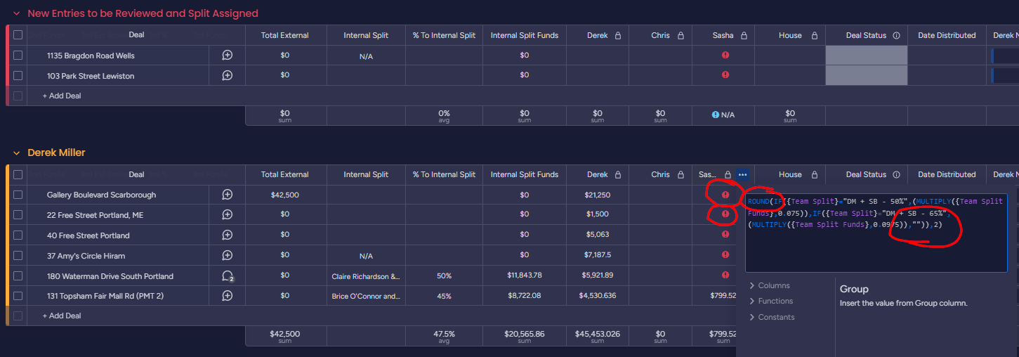 I do have one more formula question. Currently I have formulas calculating commissions based on a status in a “Team Split” column. If using a ,“” at the end to display nothing if the chosen status would not apply a commission to a broker. Formula and screenshot below.