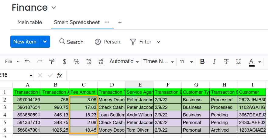 Right-click the name letter of the Fee Amount column and Select the last option in the drop-down menu Bound column to board. Add a name to the new column on a board