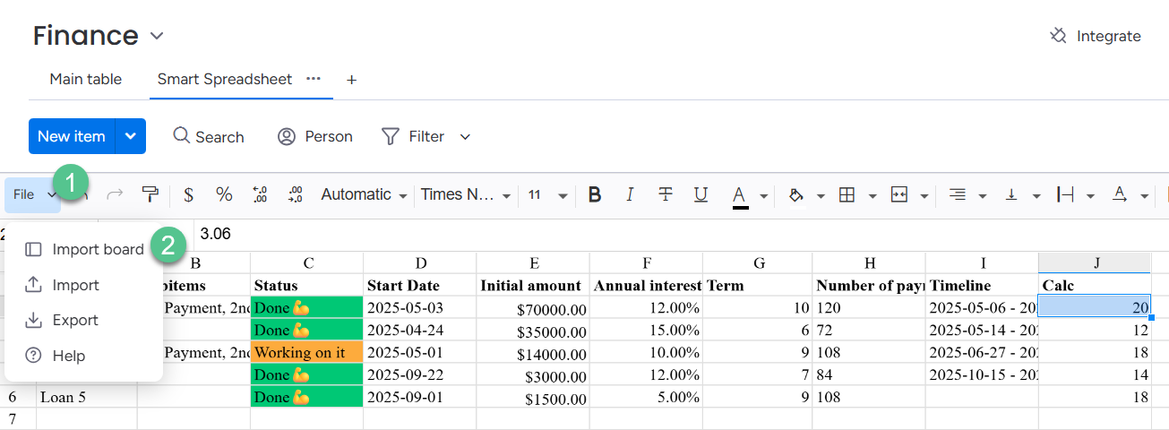 I have been looking at smart spreadsheets and trying to understand if its possible to extract calcs from certain cells into our monday boards.